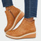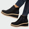 Женски **кожени ботуши с платформа** в черен цвят, които съчетават елегантност и комфорт. Някой минималистичен дизайн с **страничен цип** осигурява лесно обуване, докато **стабилната платформа** придава височина без умора. Идеални за ежедневни и вечерни излизания с модерен градски характер.