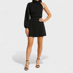 Роклята Валмира е хомаж на модерния стил с дръзък акцент. Проектирана с едно рамо и дълги, течащи ръкави, създава елегантен и привлекателен контраст. Идеална за вечери, партита или специални нощи, когато искате да блеснете с изтънченост.