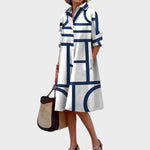 Тази риза-рокля с впечатляващ геометричен модел е перфектната комбинация от комфорт и стил. Леката кройка позволява свобода на движението, докато елегантният принт придава модерен и градски вид. Може да се носи самостоятелно или с модни аксесоари, идеална е за дневни разходки, бизнес поводи или вечерни излизания.