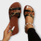 Плоска подметка и лек дизайн осигуряват комфорт през целия ден, докато комбинацията от леопардов десен и имитация на кожа придава модерен нюанс на вашите визии. Перфектен избор за ежедневна употреба и релаксиращи дни на плажа или в кафето.