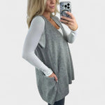 Елегантен и топъл, този жилет обожават нашите клиенти! Този флуиден и пухкав жилет е перфектен за многослойно облекло, с дълга дължина и А-образен силует, който създава ласкава форма. Леката плетена материя осигурява топлина без тежест, докато меланжовите тонове и детайлите от ребриста тъкан добавят щрих на стил.