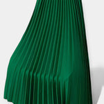 Импозантна и ефирна, тази плисирана пола с високата талия и широкия крой представлява изявен моден елемент за всяка гардероб. Идеална за стилни визии от сутрин до вечер, тя комбинира движение, елегантност и вечен характер.